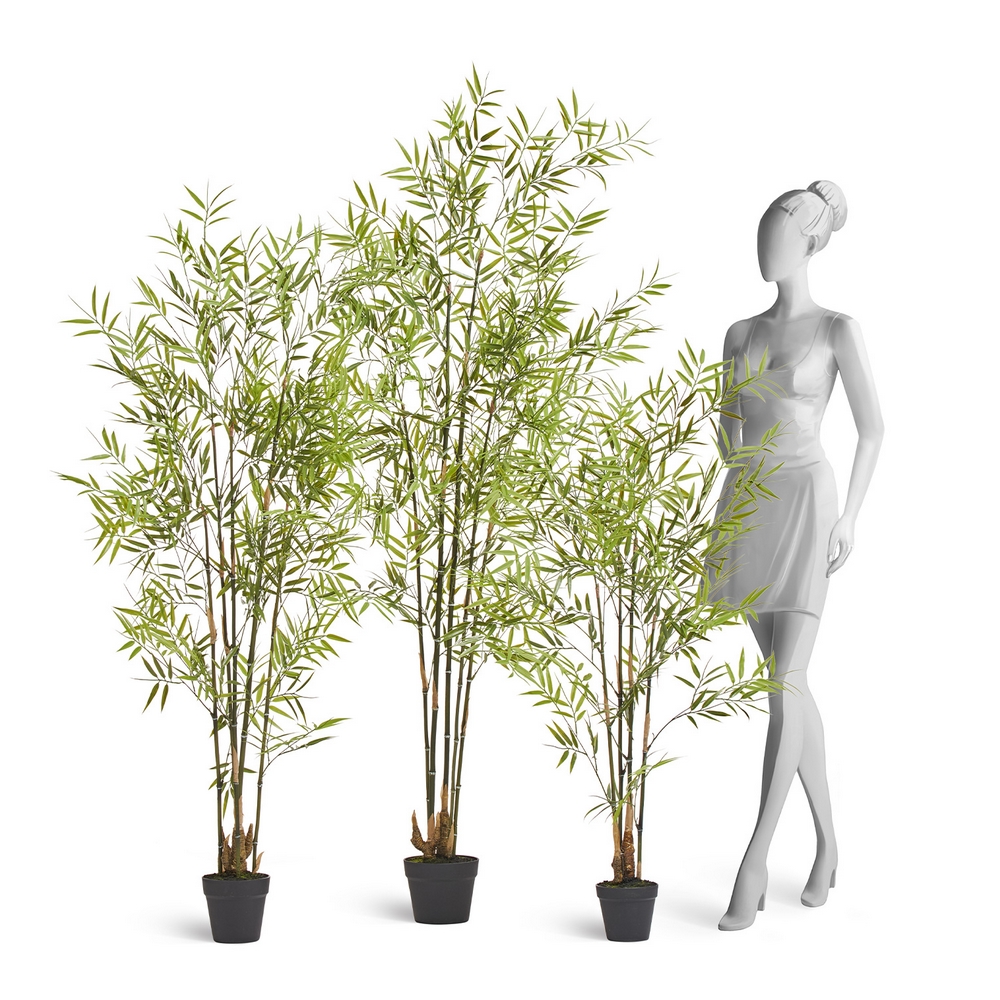 Искусственный японский бамбук выполнен на натуральных стволах. Возможная высота бамбука от 110 до 230 см. Листочки мелкие, неоднородного зеленого цвета. Поставляется в небольшом техническом горшочке.