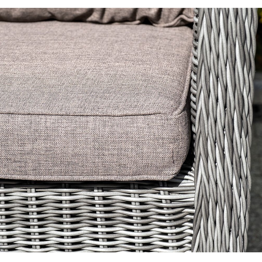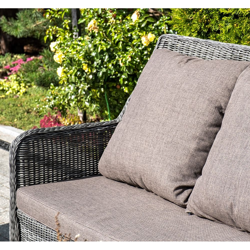 Размер: 190*88*99 см Диван выполнен в классическом стиле из искусственного округлого ротанга. Каркас - алюминий Подушки в серо-коричневом цвете входят в комплект.