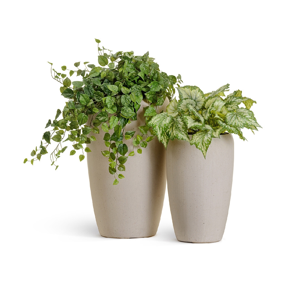 Кашпо представлены в двух цветах: белый песок и темно-серый камень.