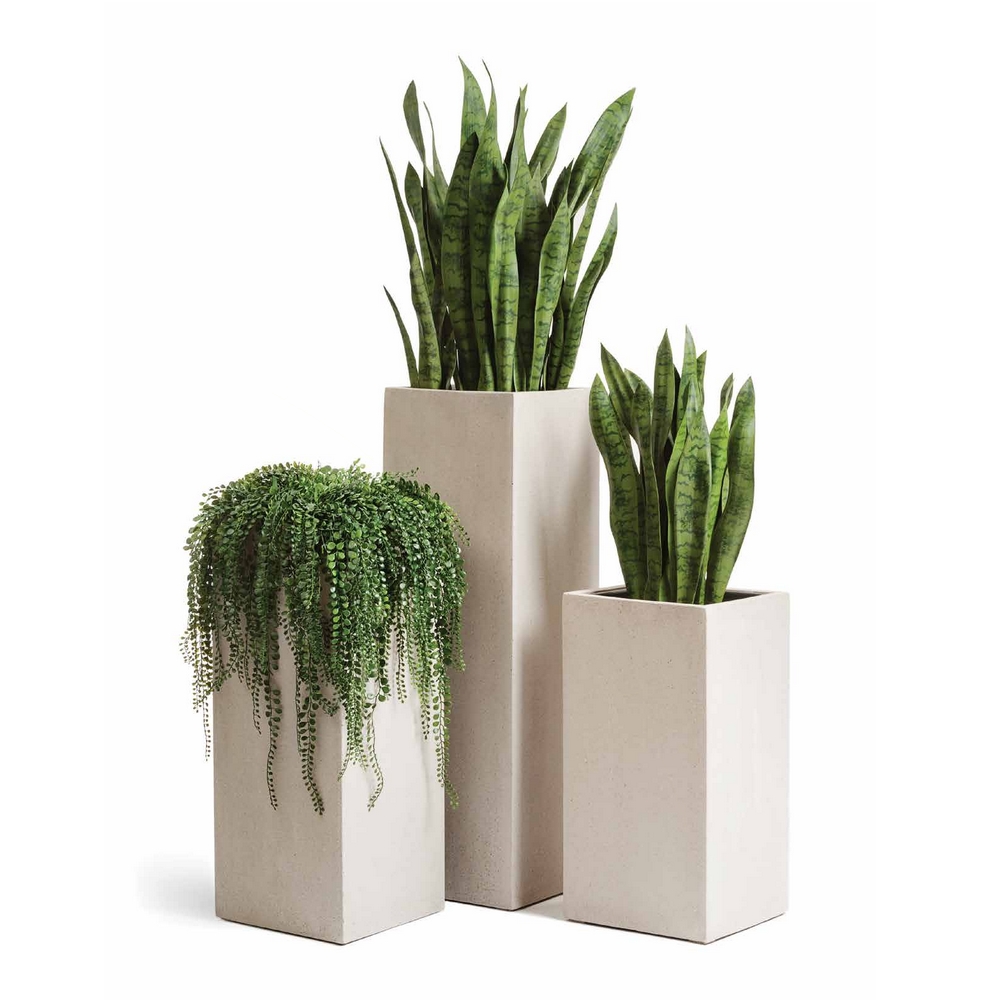 Кашпо TREEZ Effectory Beton Высокий куб Белый песок