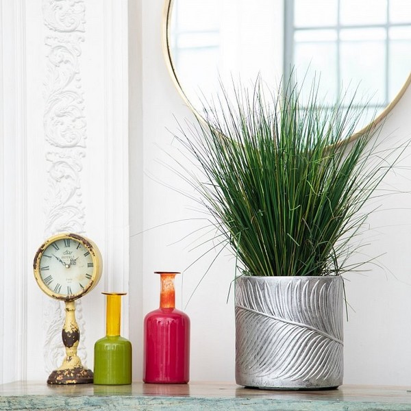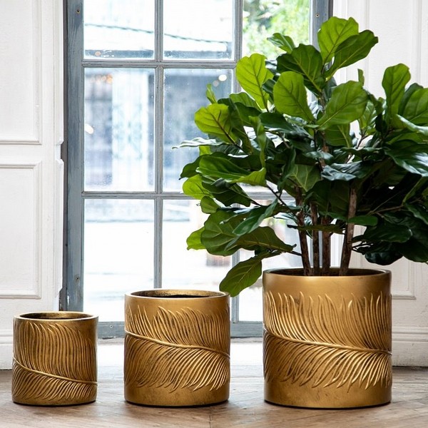 Кашпо поставляется в 4х размерах и двух цветах: состаренное серебро и состаренное золото.