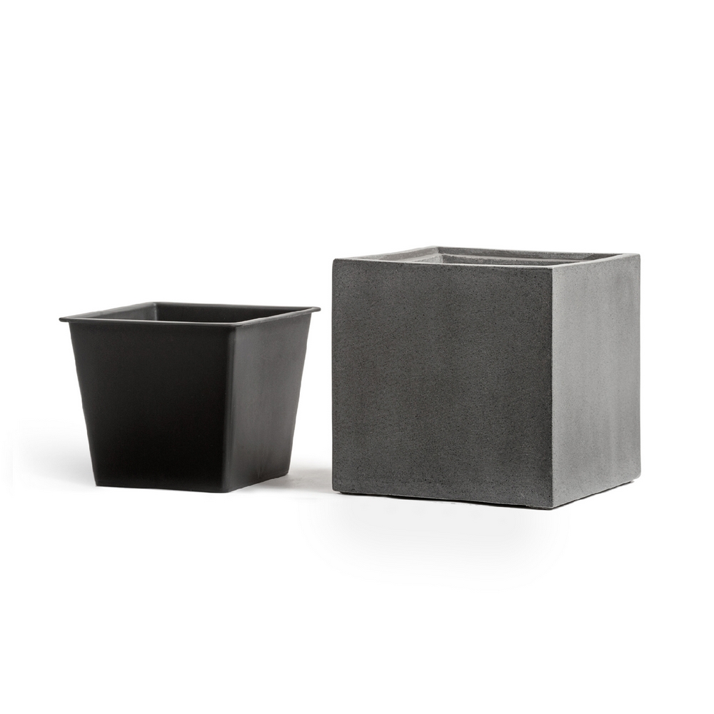 Кашпо серии Effectory Beton выполнены из полистоуна (смесь натурального камня, смолы и пластика)