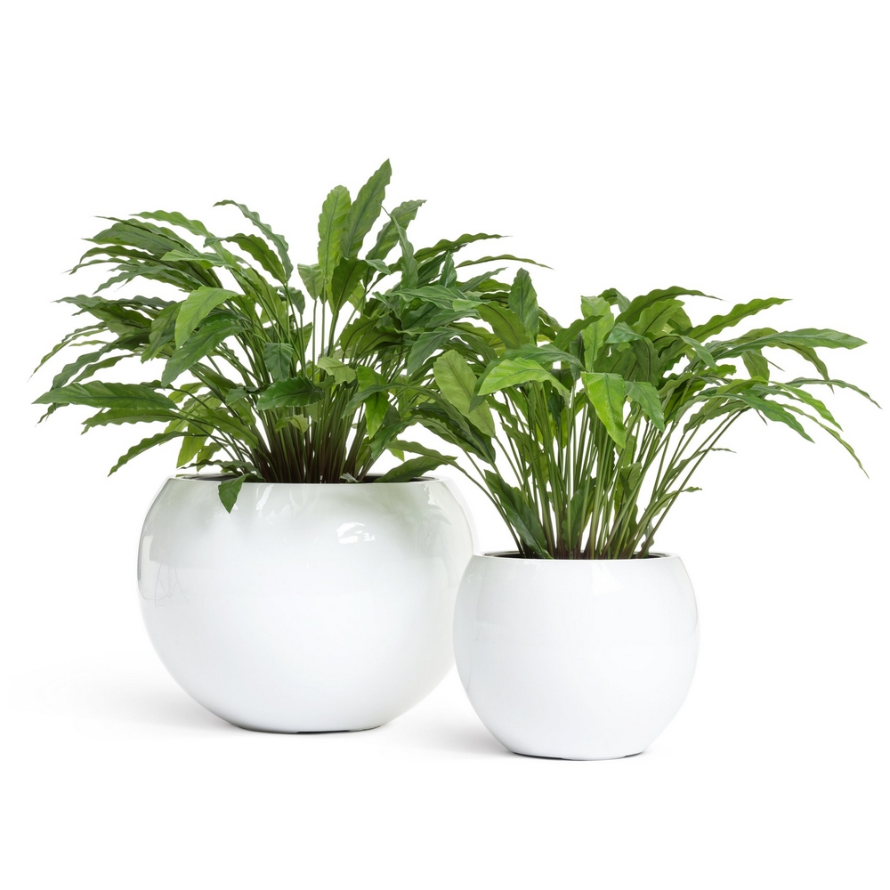 Кашпо представлены в одном цвете: белый глянцевый лак