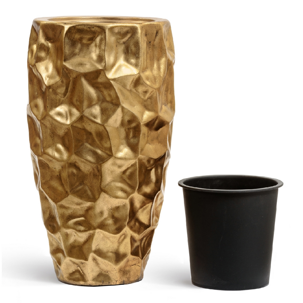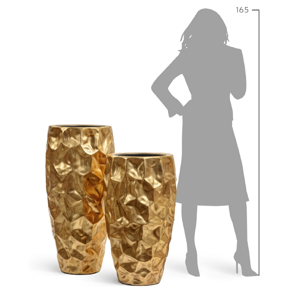 Кашпо TREEZ Effectory Metal Высокий округлый конус Design Сrumple Сусальное золото