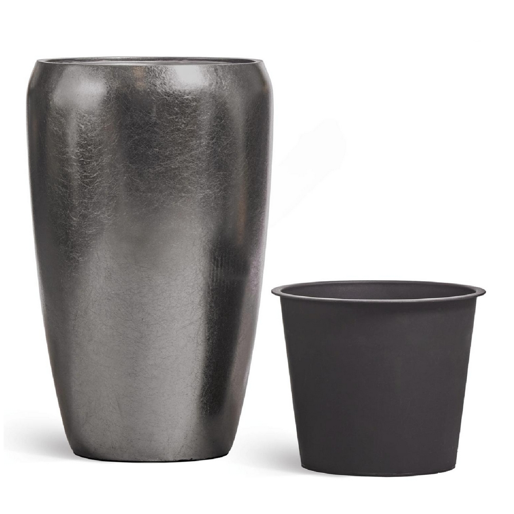 Кашпо TREEZ Effectory Metal Высокий округлый конус Стальное серебро