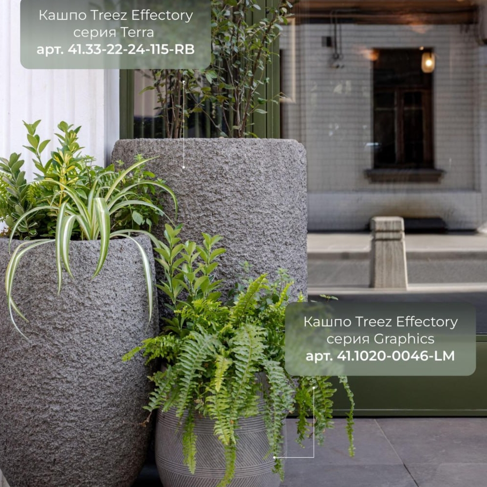 Кашпо Treez отличаются элегантным и современным дизайном, который подходит для любого интерьера. Выбирая кашпо Treez в магазине “Зеленый Дворик” в Краснодаре, вы придаете своим растениям не только поддержку, но и стильное убранство. Они представлены в различных цветах и формах, позволяя вам подобрать идеальный вариант для вашего дома и сада. В магазине “Зеленый Дворик” в Краснодаре представлен широкий выбор уличных больших кашпо Treez различных форм, цветов и текстур. Вы сможете подобрать кашпо, которые идеально впишутся в стиль вашего сада или террасы, создавая гармоничное и привлекательное пространство.