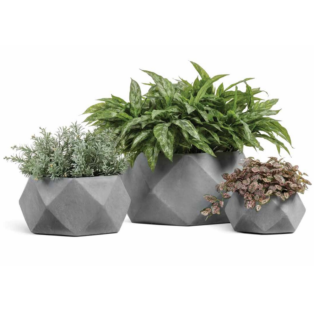 Кашпо серии ERGO Rombo выполнены из файберклэй (композит – смесь цемента и полимерной смолы)