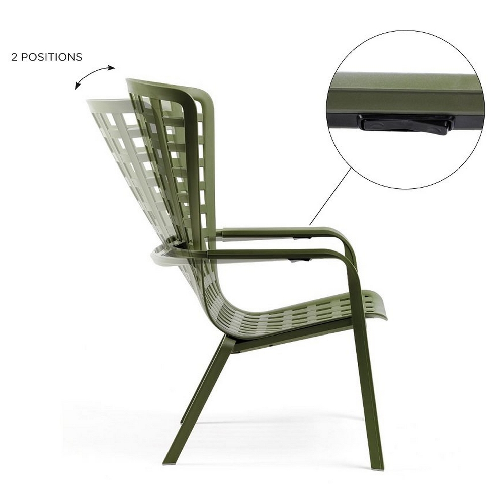 Каркас кресла выполнен из стеклопластика, преимуществами которого являются долговечность, устойчивость к воздействию коррозии и солнцу. Прочность структуры стеклопластика можно сравнить с показателями стали, при этом изделия из стеклопластика в разы легче металлических.