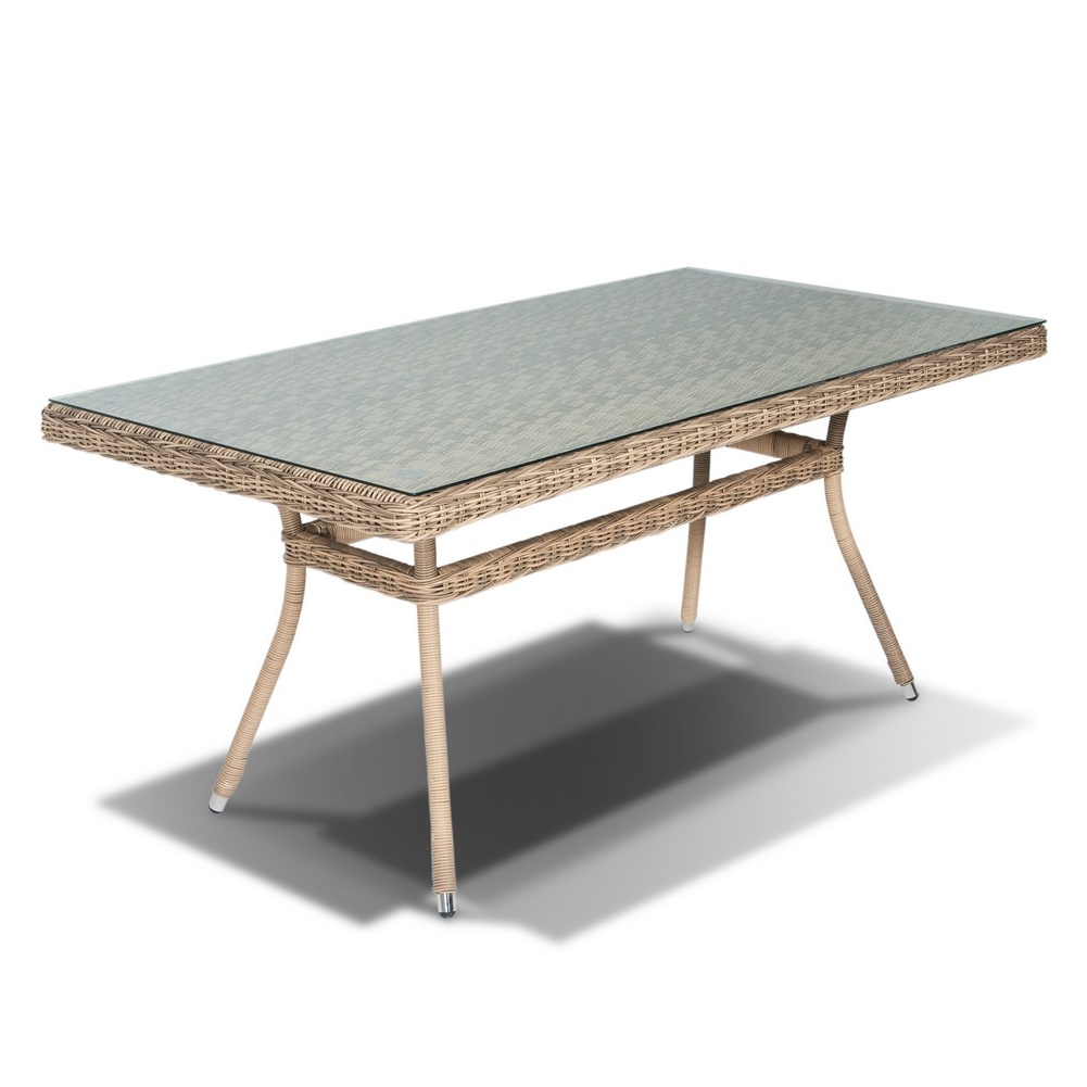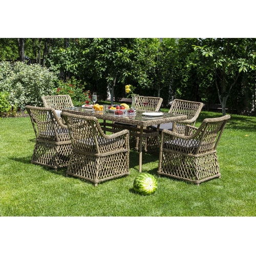 Комплект выполнен из искусственного ротанга в соломенном цвете. Столешница – стекло 5мм
