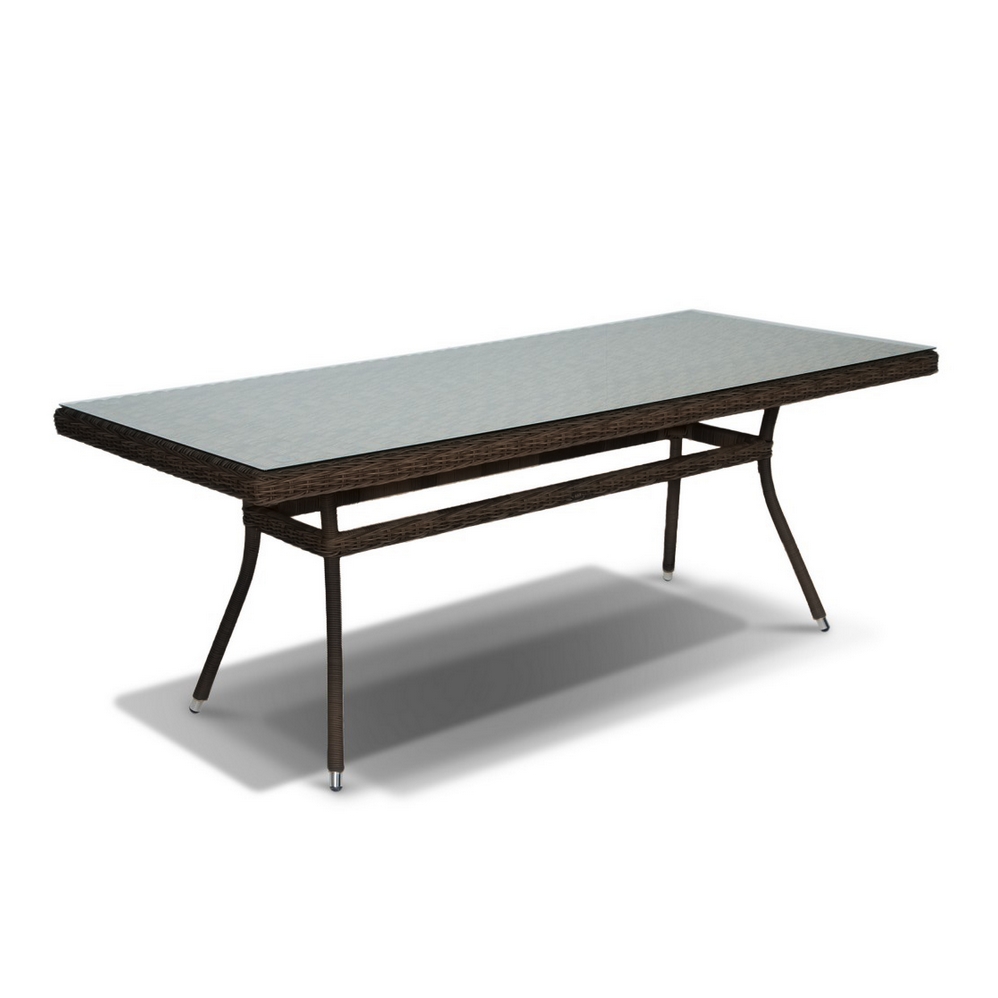 Комплект выполнен из искусственного ротанга. Столешница – стекло