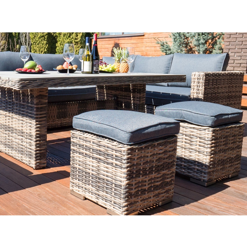 Комплектация: угловой диван, кресло, 2 пуфика, обеденный стол