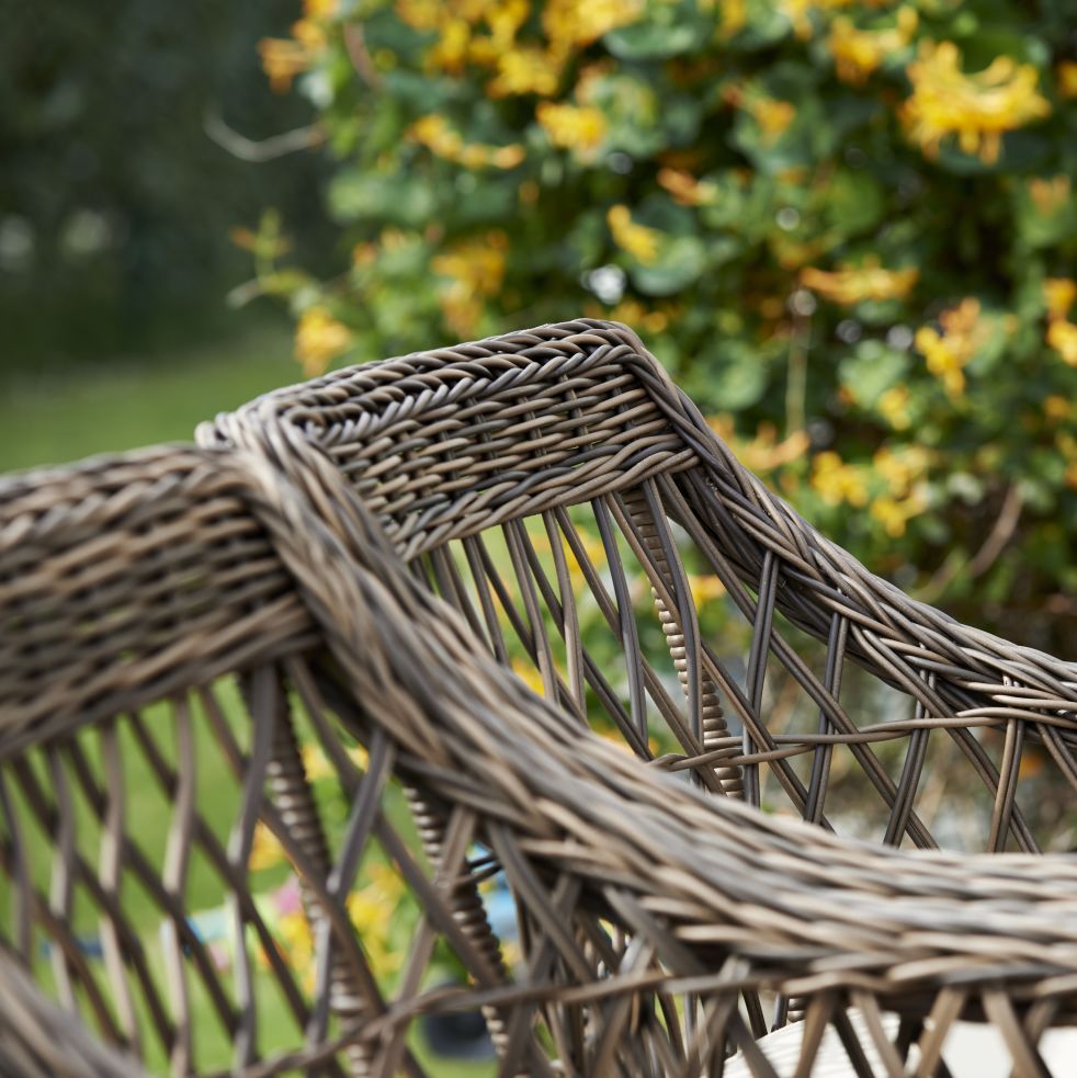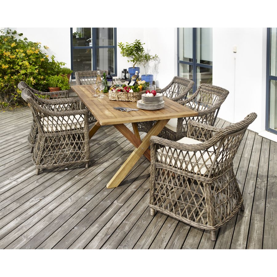 Размер: 60*67*85 см Обеденное кресло кресло Beatrice из искусственного ротанга в коричневом цвете. В комплект входит подушка бежевого цвета.