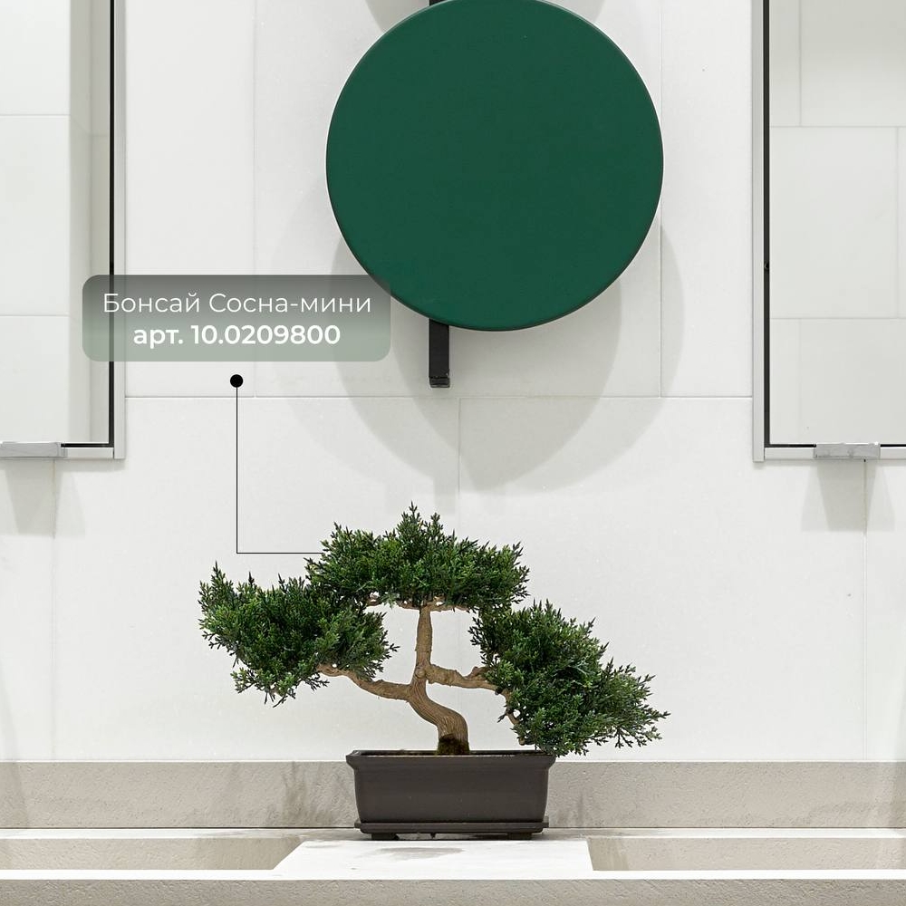 Искусственный бонсай с мелкими хвойными листиками(сосна)- 100% копия живого растения. Ствол выполнен из пластика, с имитацией под дерево. Максимальная детализация каждого элемента. Поставляется в декоративном кашпо (матовый, цвет кофе). Поверхность задекорирована искусственным мхом. Ваысота указана от дна декоративного кашпо до макушки искусственного бонсая сосны.