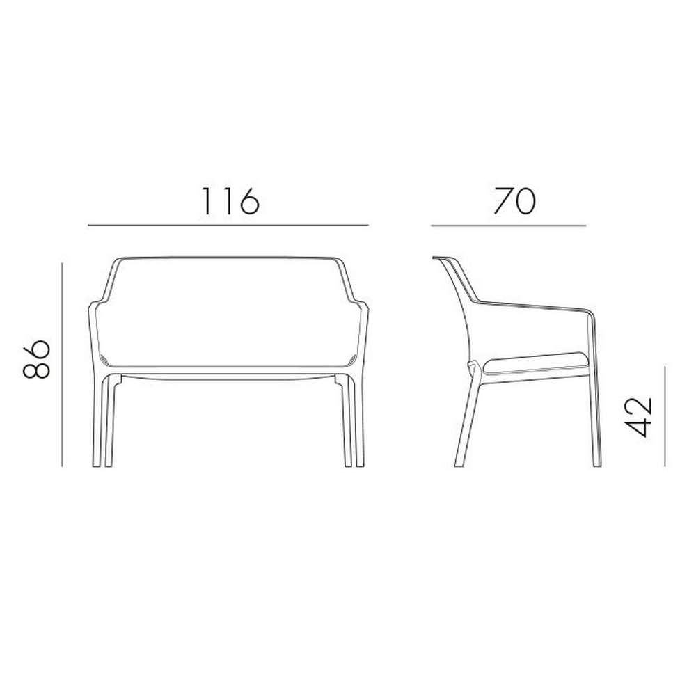 Размер: 116*70*86 см Пластиковый диван в стильном дизайне от Итальянской фабрики Nardi. *Дополнительно можно приобрести подушку на сиденье.