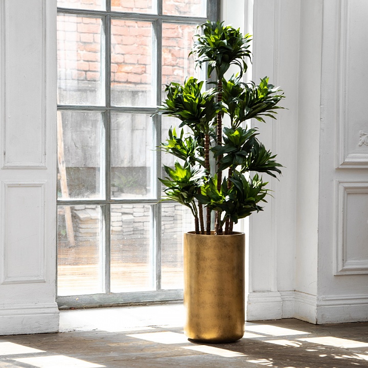 Кашпо выполнено в форме цилиндра, в 2х оттенках: состаренное серебро и состаренное золото, в 3х размерах.