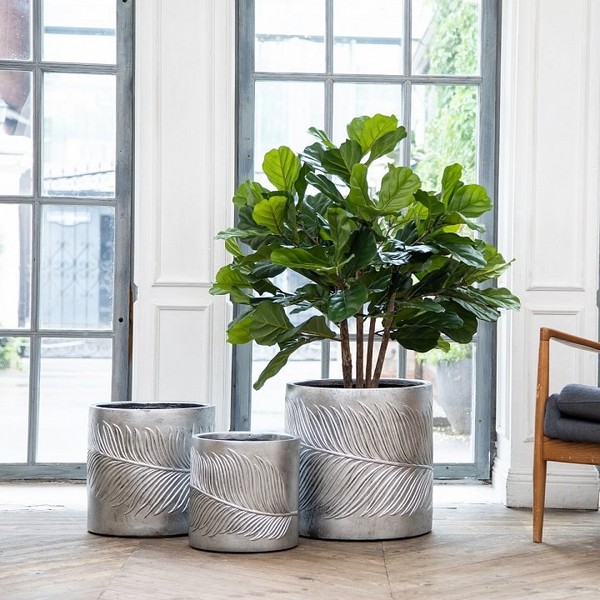 Кашпо поставляется в 4х размерах и двух цветах: состаренное серебро и состаренное золото.