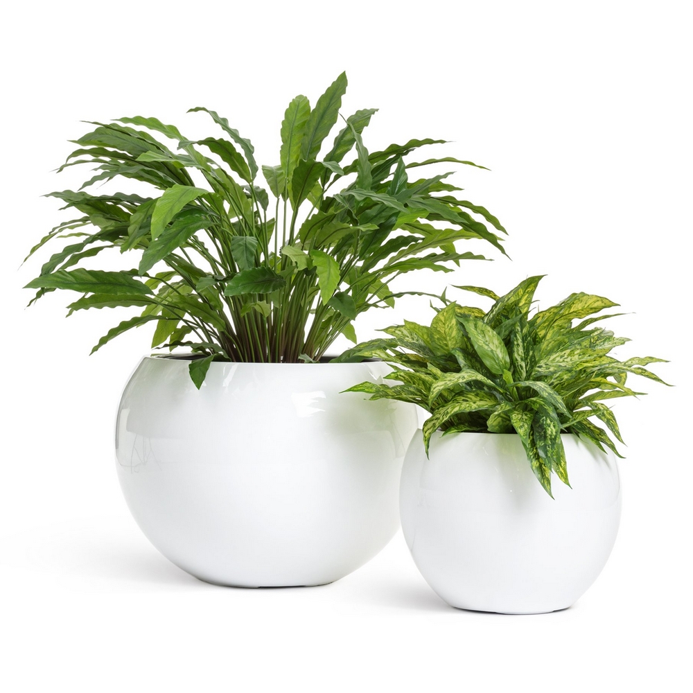 Кашпо представлены в одном цвете: белый глянцевый лак