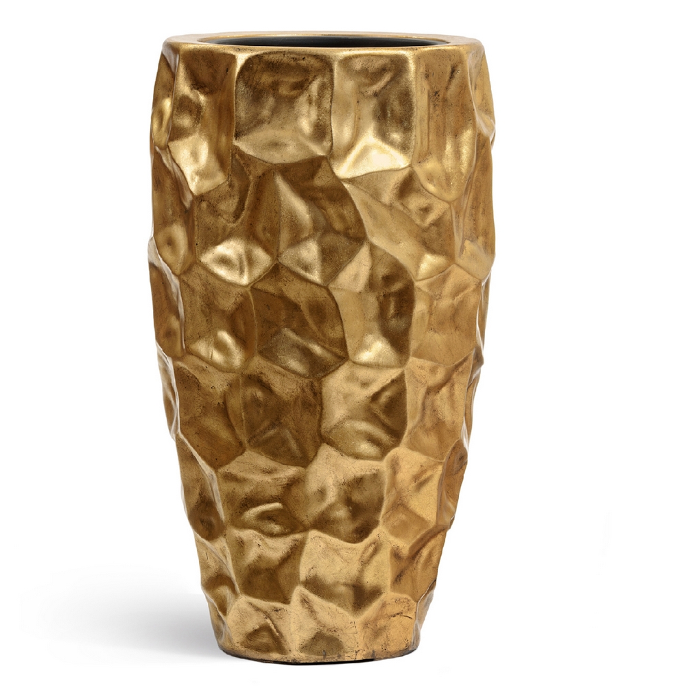 Кашпо TREEZ Effectory Metal Высокий округлый конус Design Сrumple Сусальное золото