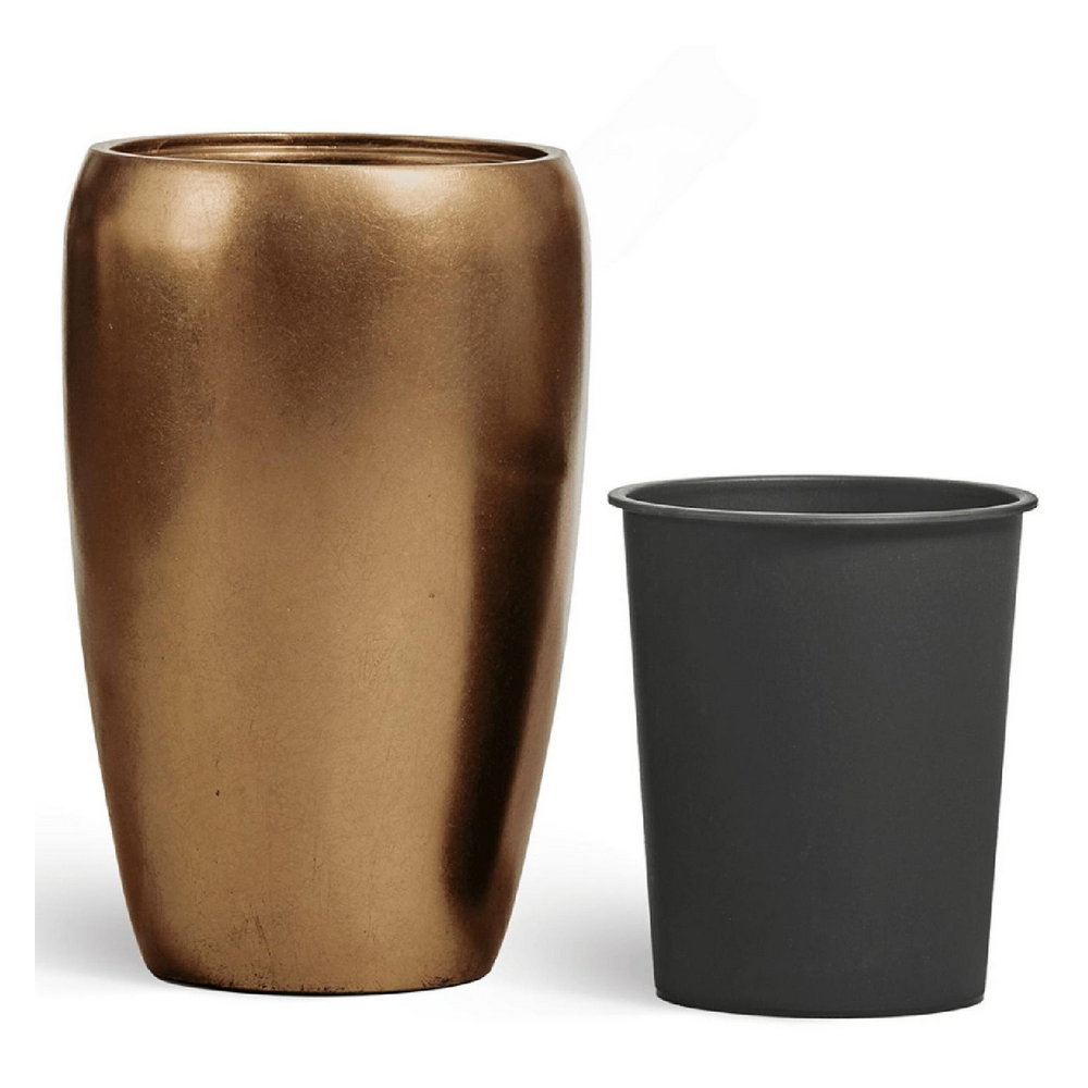 Кашпо Серии Effectory, коллекция "Metall" - фактурные, качественные, ручной работы, имитирующие поверхность металла. Материал - полистоун (смесь натурального камня, смолы и пластика). Коллекция представлена в 7-ми цветах: медь, розовая медь, окись с золотой патиной, состаренное серебро, стальное серебро, сусальное золото и темное матовое золото. Кашпо имеют внутренний горшок: Внешнее кашпо: D31, H72; внутренний горшок: D23, H30 см Внешнее кашпо: D39, H95; внутренний горшок: D32, H30 см Система автополива приобретается отдельно: для кашпо D31 (система полива арт. 41.3300-04-CN-21) для кашпо D39 (система полива арт. 41.3300-03-D-28). Кашпо можно использовать как и внутри помещения, так и снаружи. *Кашпо имеет неоднородную фактуру, что не является производственным дефектом, а скорее признаком ручной работы.