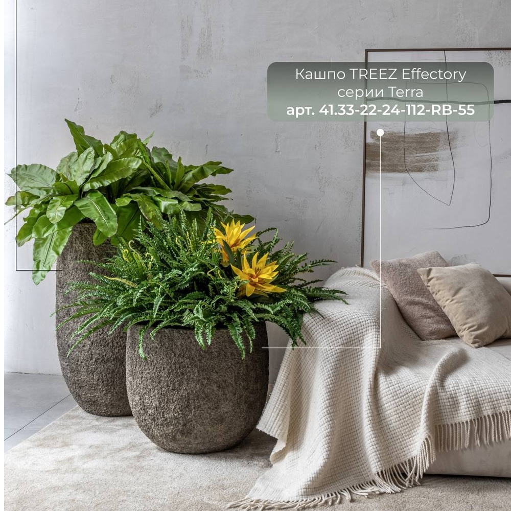 Кашпо серии Effectory Terra выполнены из полистоуна (смесь натурального камня, смолы и пластика)