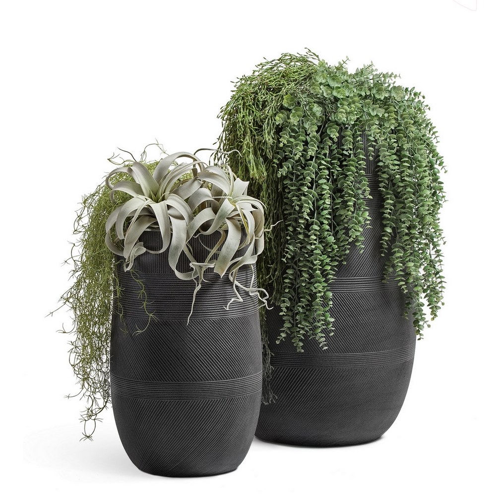 Кашпо представлены в трех цветах: черный графит, окись с медной патиной, капучино