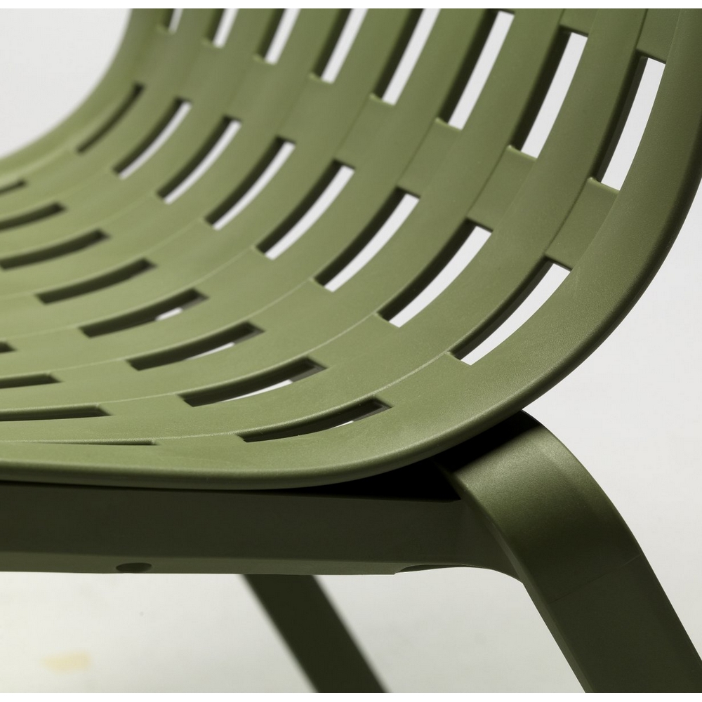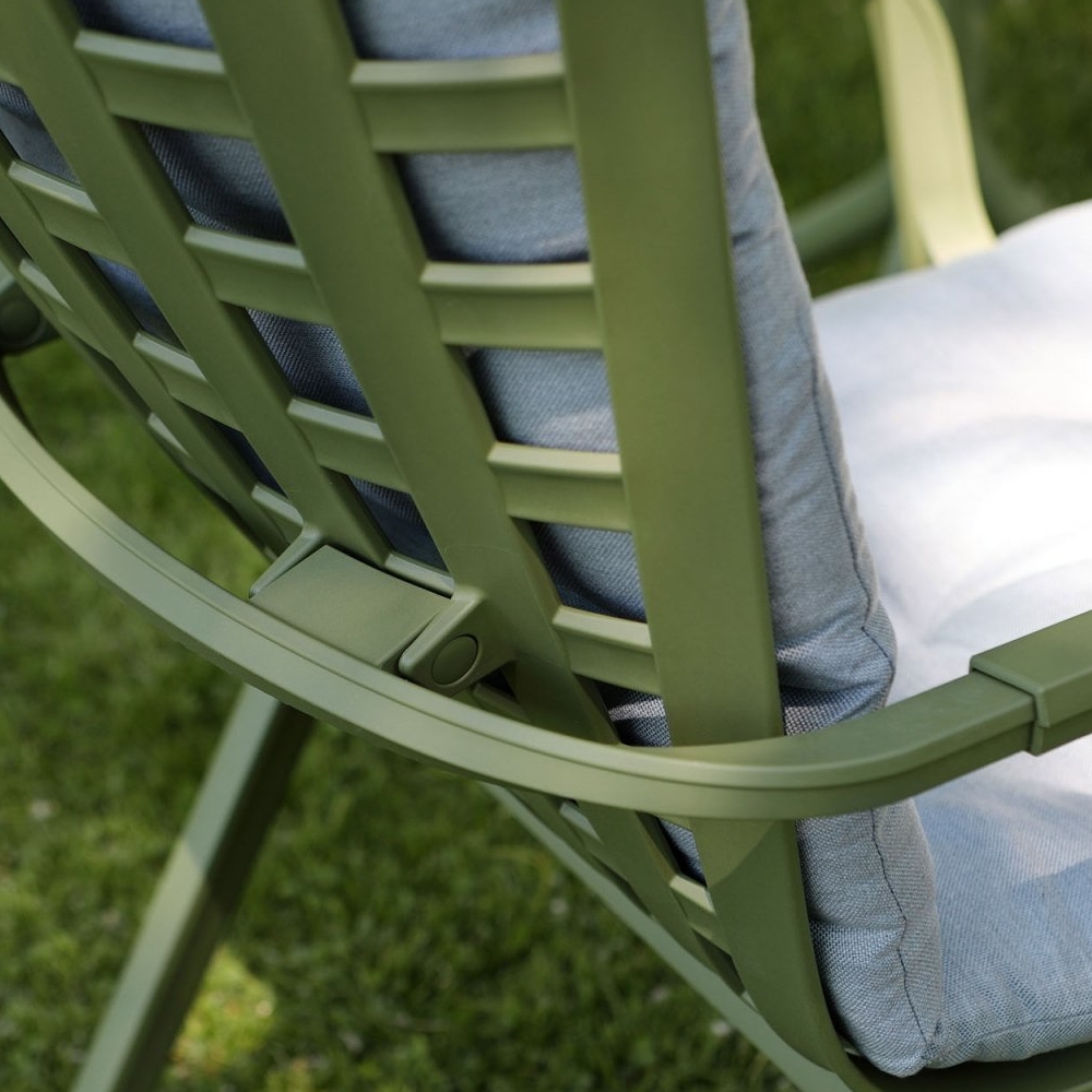 Каркас кресла выполнен из стеклопластика, преимуществами которого являются долговечность, устойчивость к воздействию коррозии и солнцу. Прочность структуры стеклопластика можно сравнить с показателями стали, при этом изделия из стеклопластика в разы легче металлических.