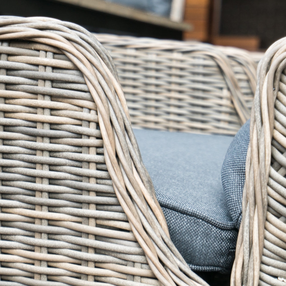 Комплект выполнен из искусственного ротанга в коричневом цвете.