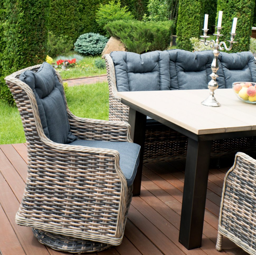 Комплектация: 3х местный диван, 3 кресла, 2 кресла с вращающимся механизмом, обеденный стол