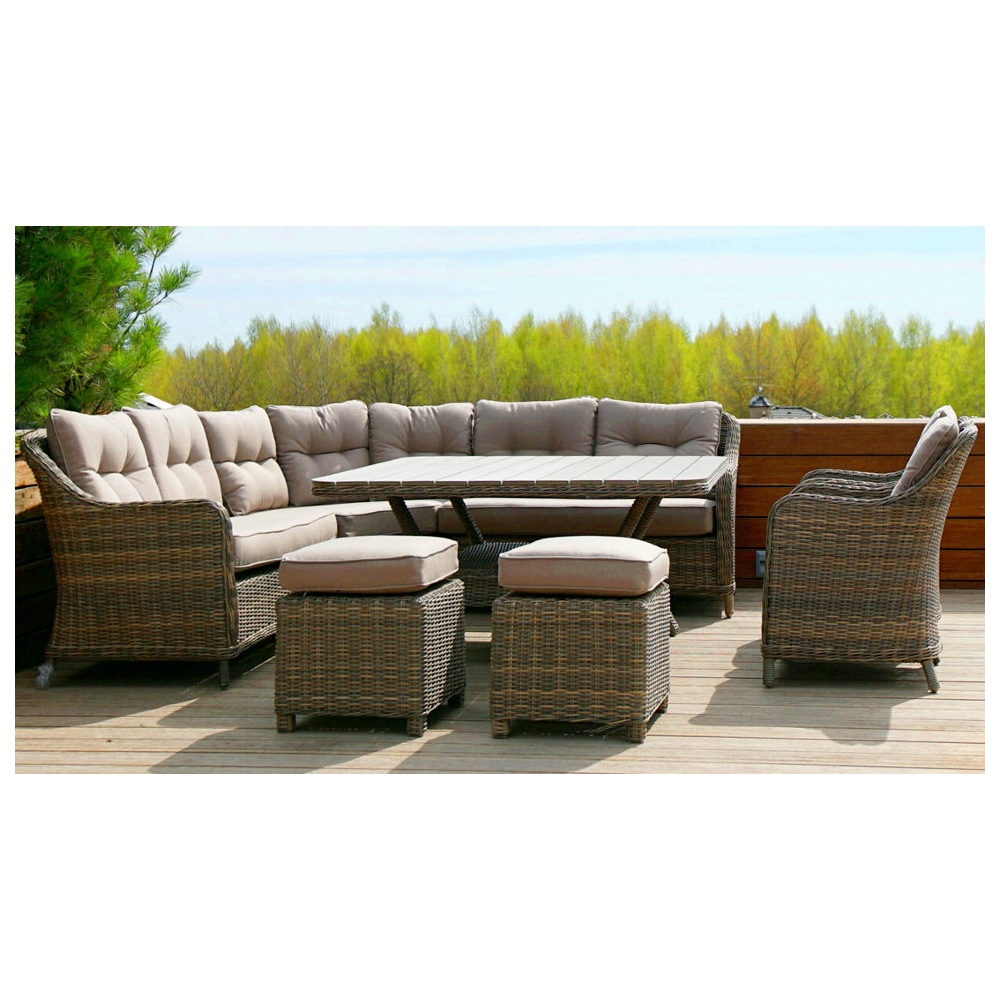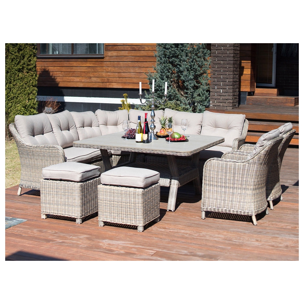 Комплектация: угловой диван, 2 кресла, 2 пуфика и обеденный стол