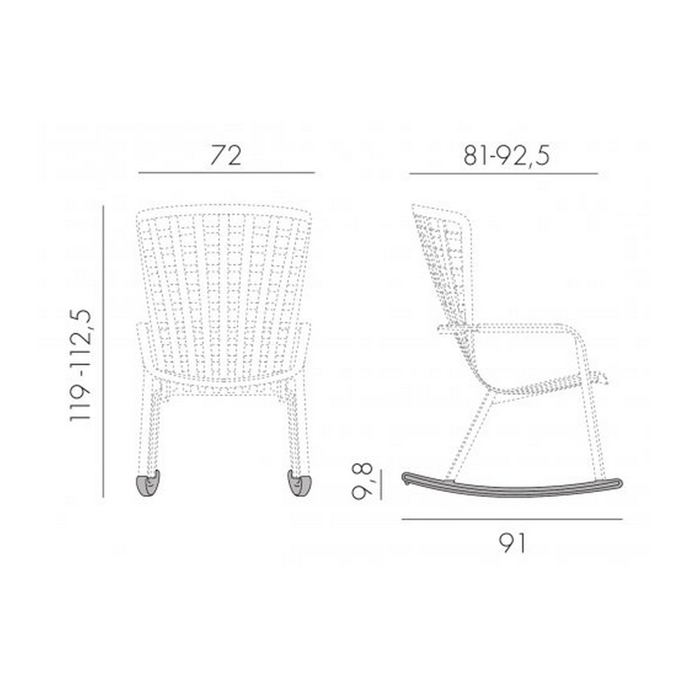 Каркас кресла выполнен из стеклопластика, преимуществами которого являются долговечность, устойчивость к воздействию коррозии и солнцу. Кресло оснащено двумя полозьями, которые превращают кресло-качалку не просто в место для отдыха, а и для релаксации.