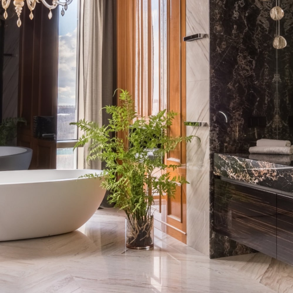 Каталог/Цветочные композиции/Композиция железный папоротник Элегант в стекле с мхом, корнями, землей
